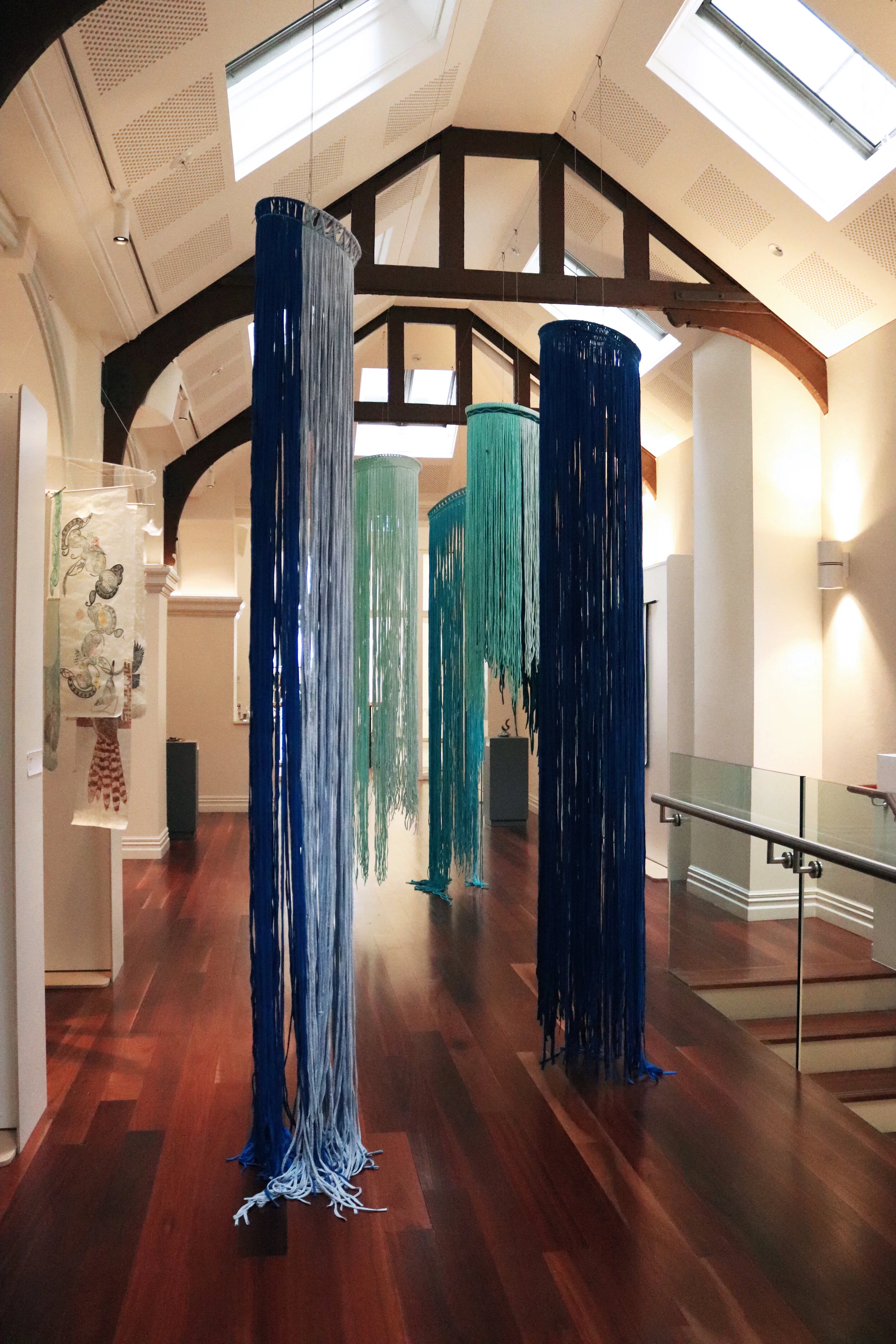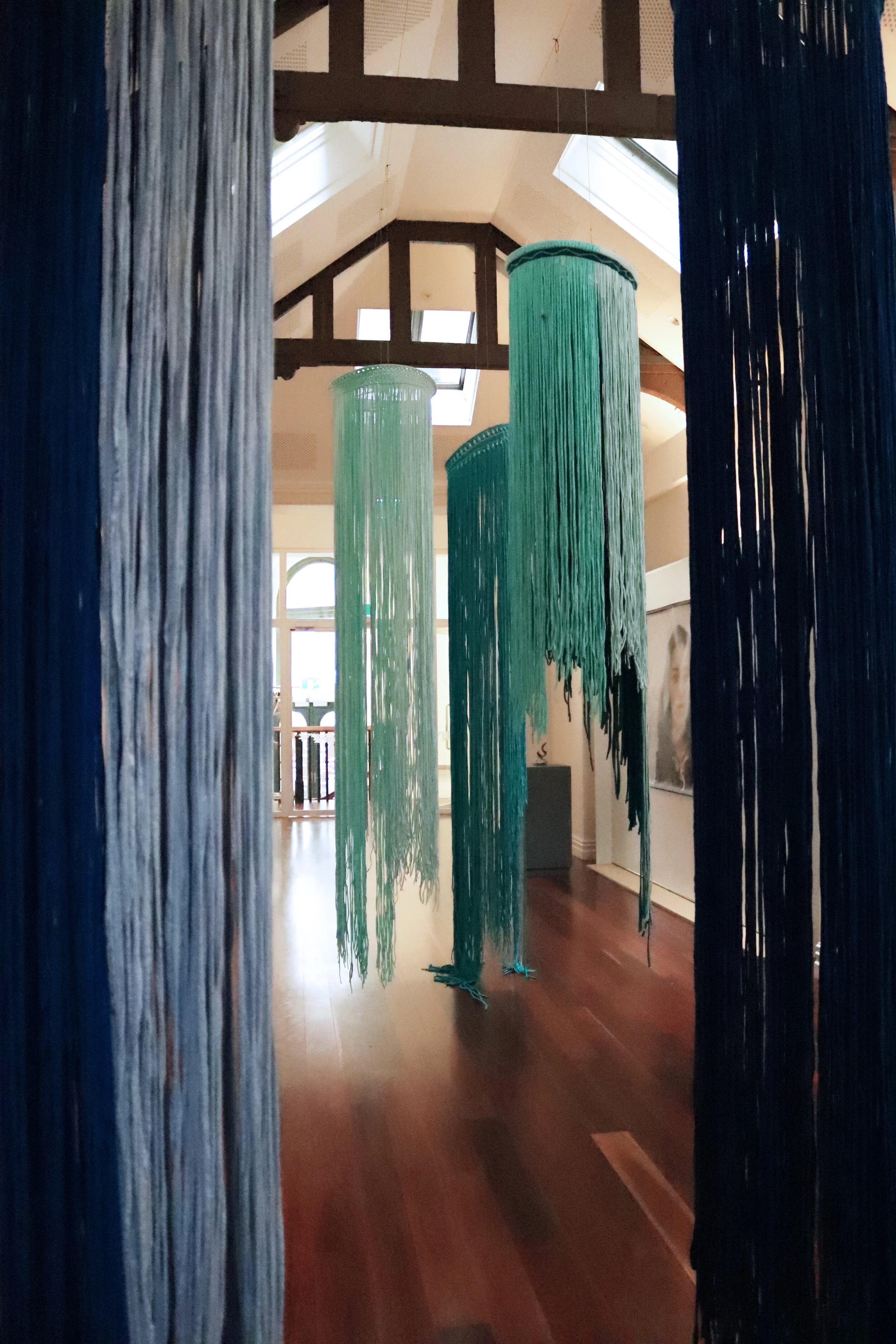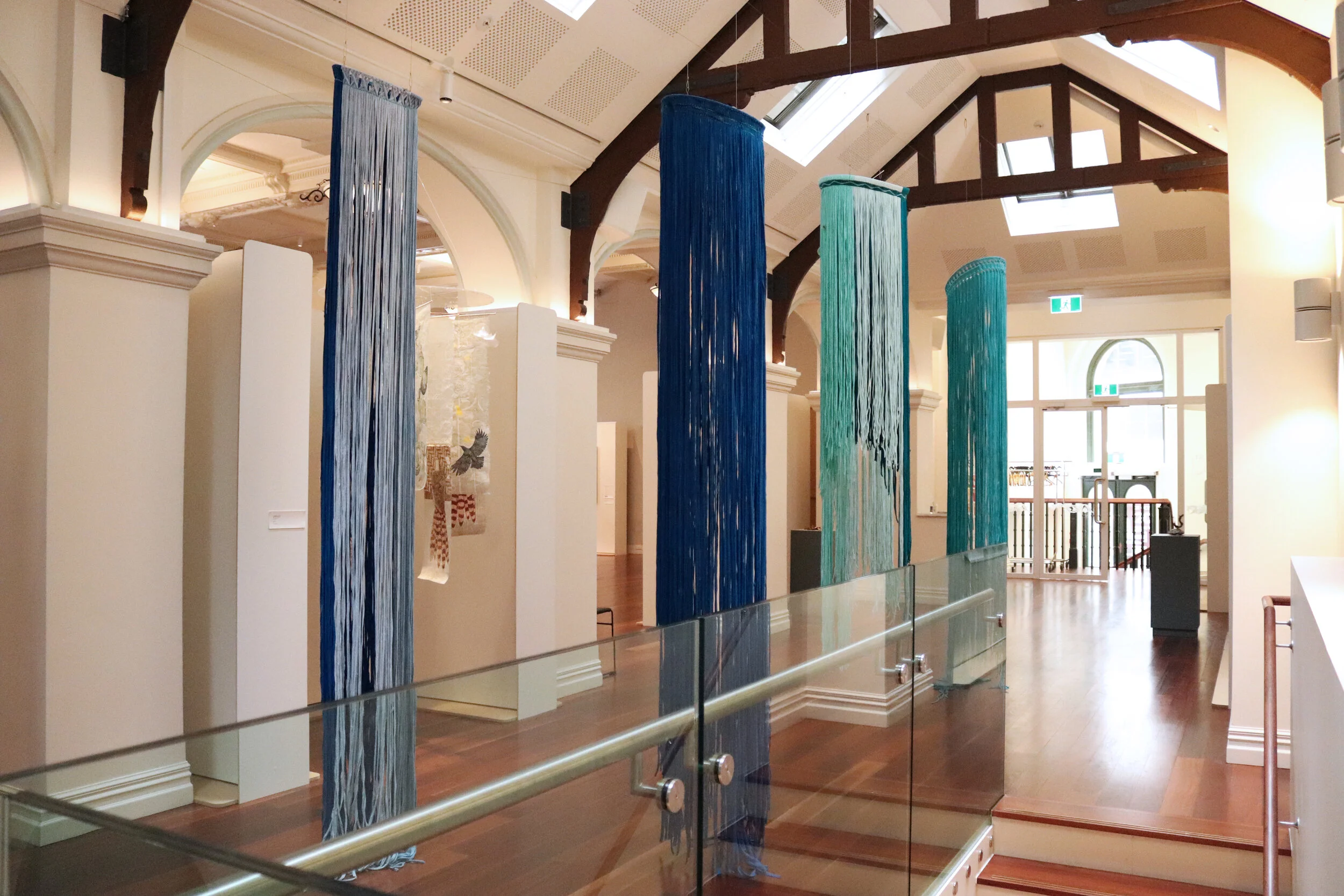 The works are made with found materials, recycled t-shirt material as a further conversation into being sustainable and responsible citizens to our whenua.