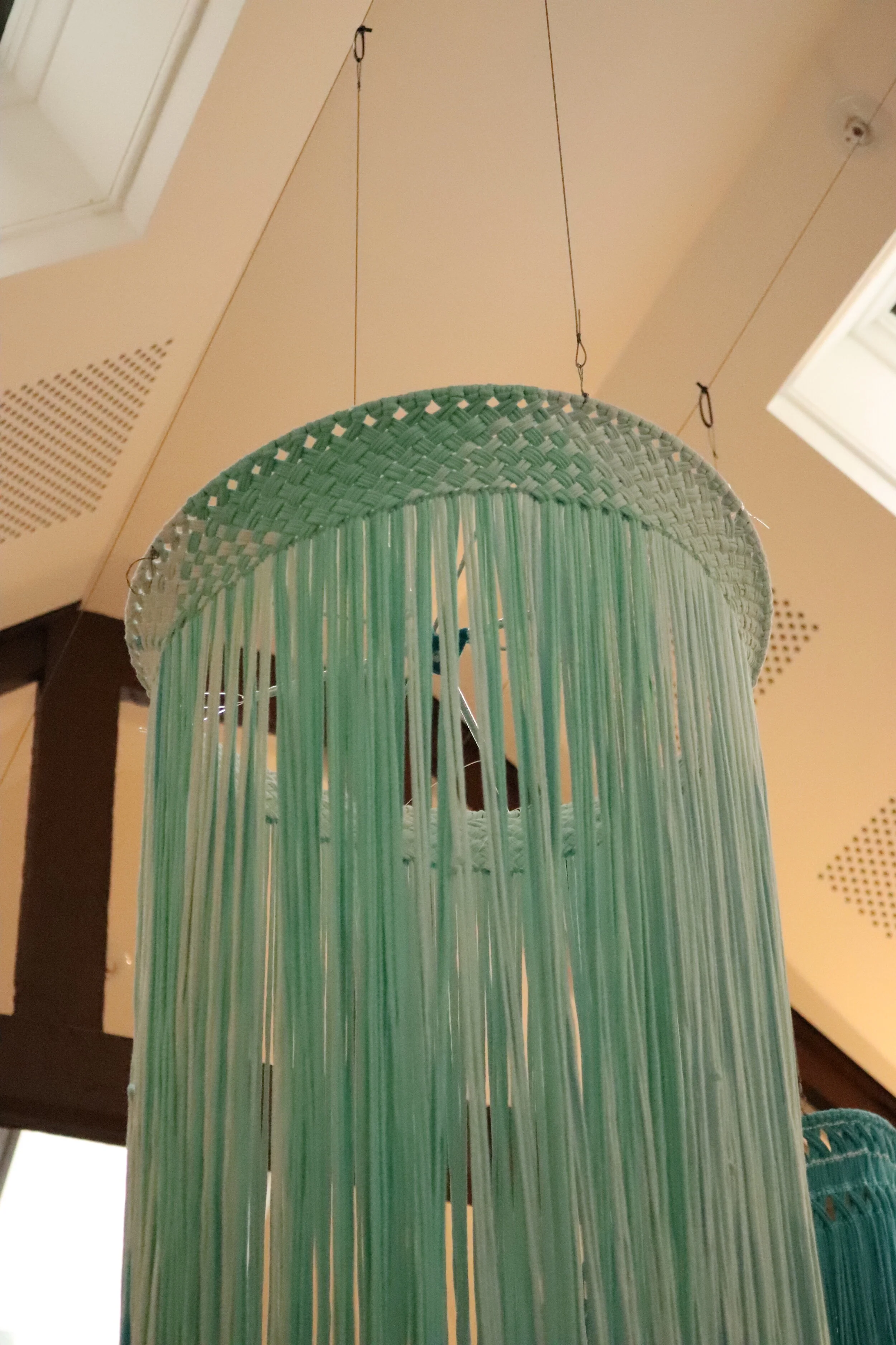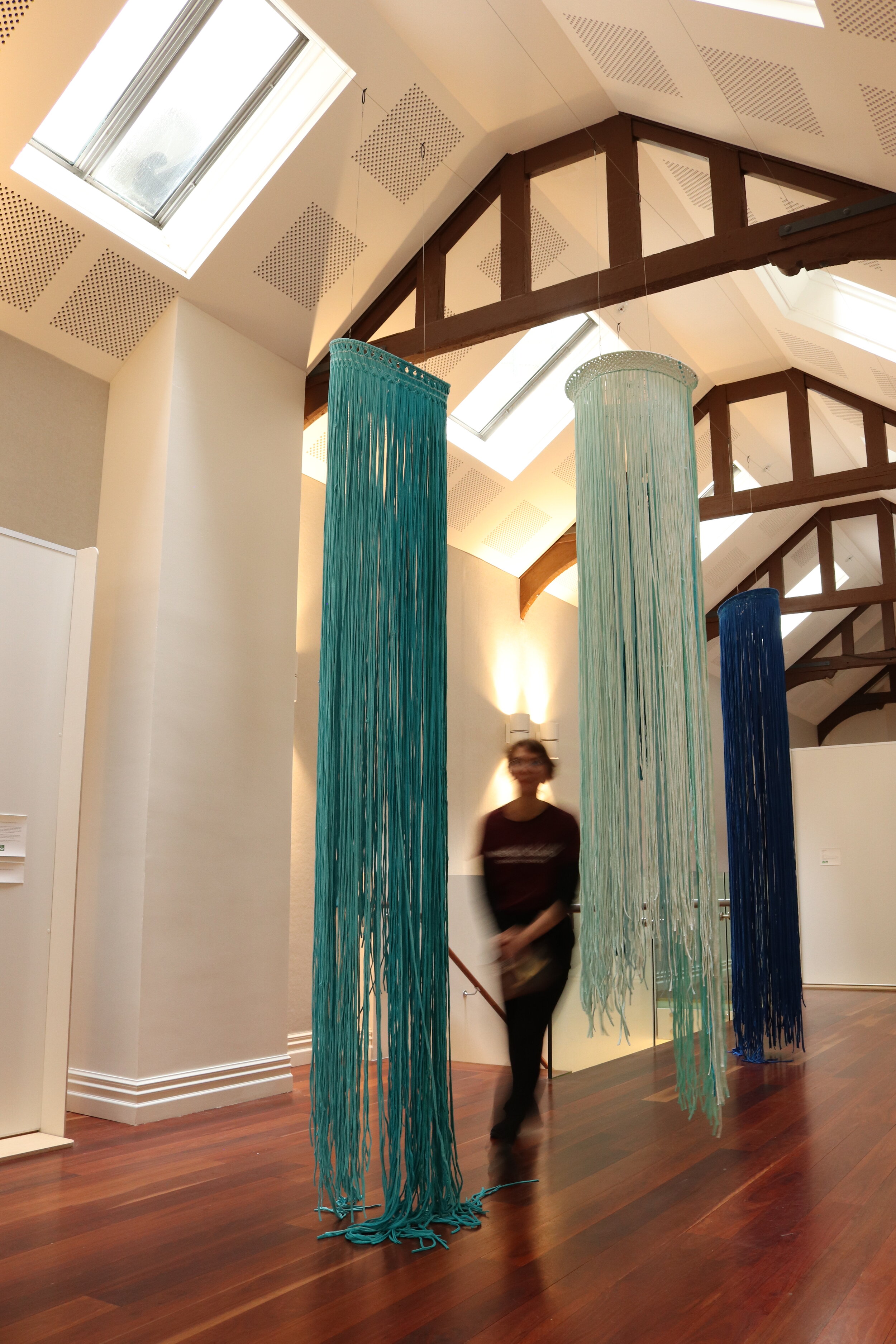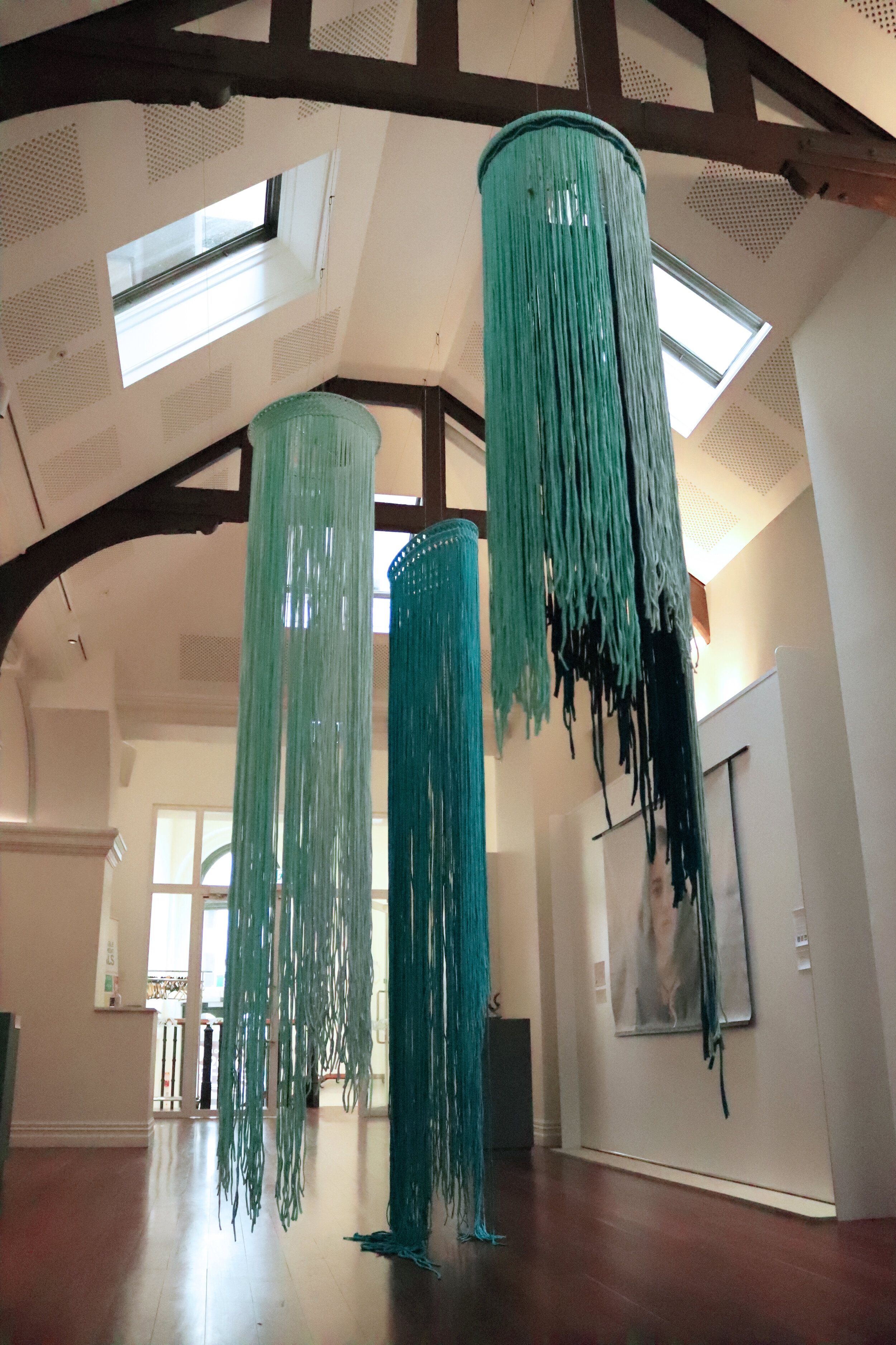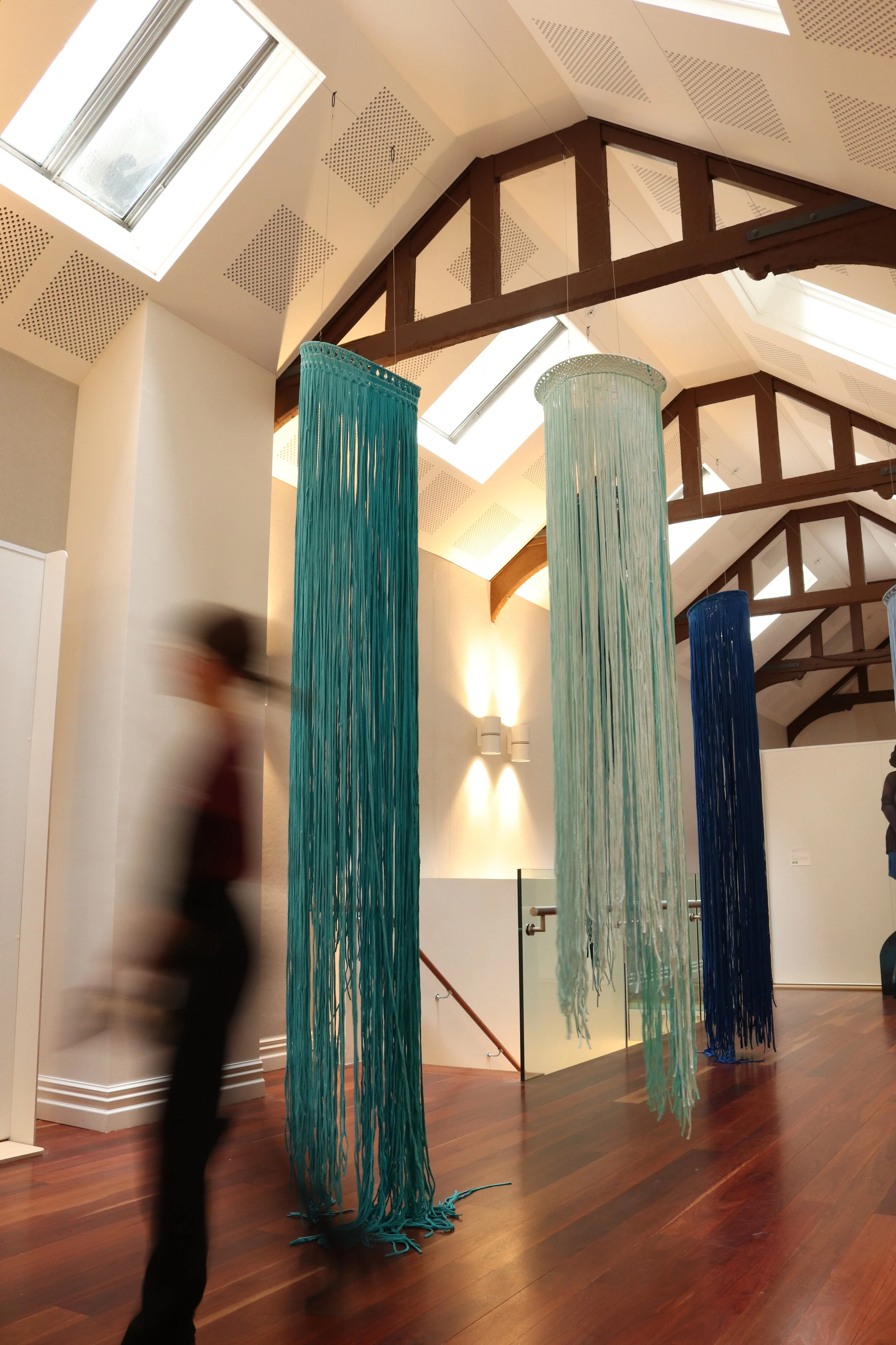 The works are made with found materials, recycled t-shirt material as a further conversation into being sustainable and responsible citizens to our whenua.