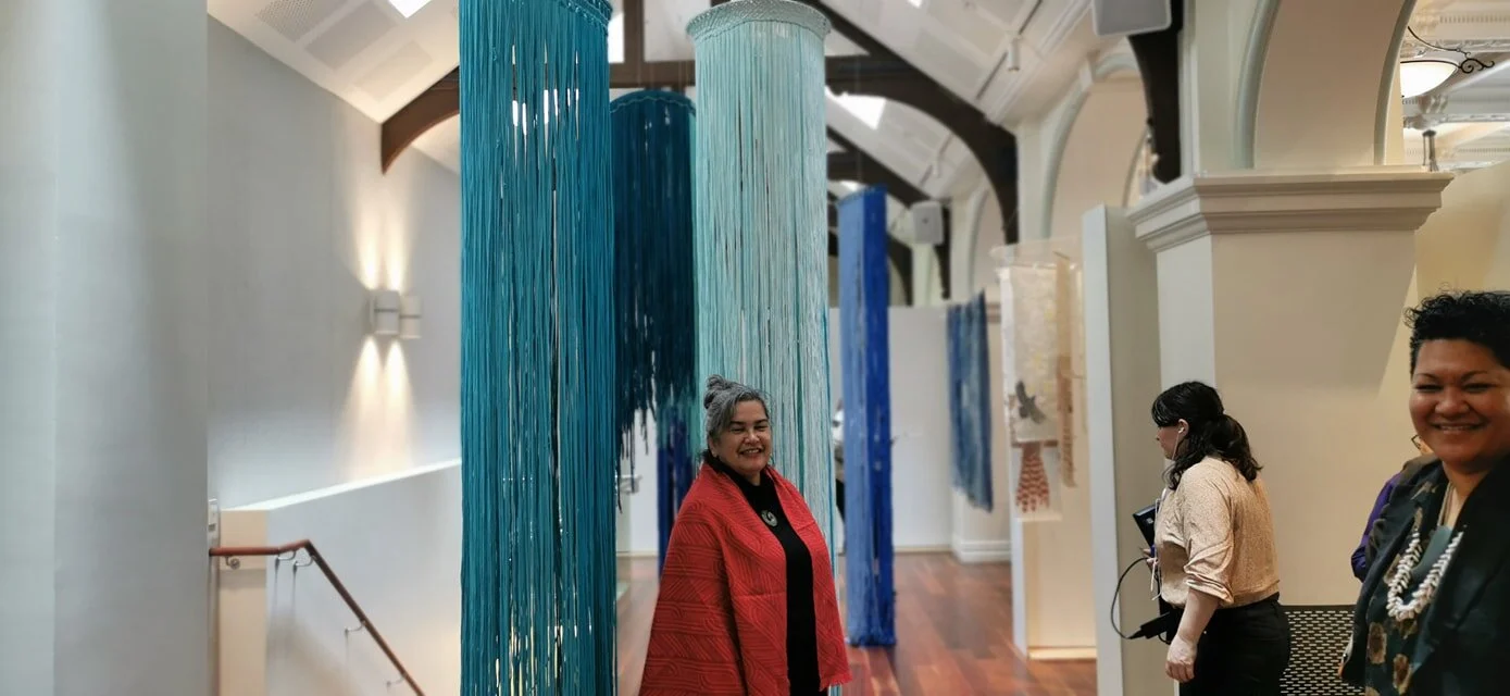 Rigby is a skilled senior weaver, with years of experience creating beautiful taonga (treasures) from natural fibres native to Aotearoa New Zealand, feathers, and more contemporary fibres. Her works use traditional skills passed from one generation to the next and she often creates pieces that are a commentary on the habitat that these resources are sourced, the need to be aware of our effect on the environment and continued sustainable practice.